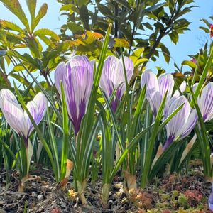 💙○︎o。空と植物。o○︎💜 Good Morning!(o‘∀︎‘o)b 🍀GS『今日のお花』クロッカス♡ 🤍①②とも昨年3月〜馬見丘陵公園で咲いていたクロッカス♡ 💜紫と白のストライプが素敵〜 ˚* ♡︎(*゚O゚*))))