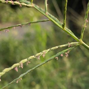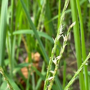 雌日芝 女日芝 イネ科メヒシバ属 小穂には2つの花が含まれ、軸側の花だけが種子をつける。 茎は細く、基部は分枝しながら地表を這い、節々から根を下ろす