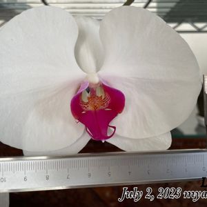上段 デンドロビウム ビクトリア レギネ 咲いた!咲いた‼️〜ꉂ🤭嬉しいなぁ〜もっと青いお花がと思ったら…こんな色もう少し時間が経つと色が濃くなるのかな〜さてさて酷暑の夏、どう管理しましょうか… ファレノプシス セミアルバ(大輪) 花芽を出したら私に体当たりされポキッ🤣節から花芽を出していざ開花となったら猫パンチ👊が飛んできてポトリ😭やっと、やっと咲くことが出来ました。開花まで波乱万丈だったね…って私が気をつければ回避出来たと思う🤔わたしの "σ(≧ ≦)∂"💦バカバカ‼️と毎年思っている気がするꉂ🤣w𐤔