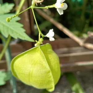 🤍🍀風船葛.フウセンカズラ🤍🍀 去年の種を根元に適当に蒔いていたら 芽を出し花が咲き可愛い実も付けてくれました🍀🤍💚