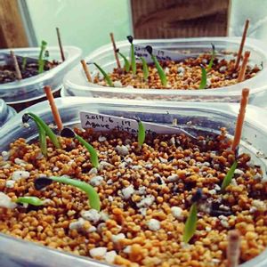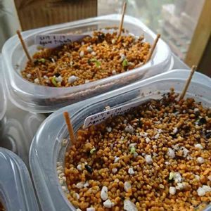 アガベ チタノタ ブルーの実生🎶 ( ー̀дー́ )ムムッ… 根元に見えるチビっこいのは もしや、2葉目かなっ♡ これはチタノタブルーの実生で これが成功したら 続々と種蒔きを始める予定で No.1の種子とか シエラミクスティカの種子を 各50粒ぐらいずつ買っておいたのに 同居している姪っ子に失くされて 100粒以上の種子がパァーになりました😭 買い直ししようにも ブルーの種子はよく見掛けるけど シエラ種子は売ってないんだよな~(´°̥̥̥ω°̥̥̥`) ネットのショップで1ヶ所 シエラ種子5粒800円+送料100円 のところは見つけたけども 5粒で900円て、絶対失敗出来ないじゃん😱 2葉目が出てテンション⤴⤴⤴なハズが テンションだだ下がり中⤵︎⤵︎⤵︎⤵︎⤵︎ シエラ種子の販売しているところを お心当たりのある方は 情報提供お願いしますm(__)m