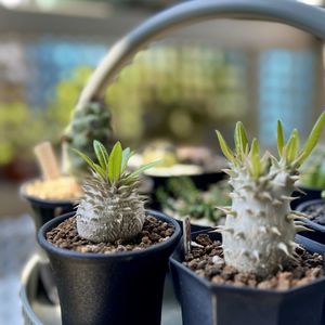 ユーフォルビア属 ギラウミニアナ✨️✨️ パキポディウム属 ブレビカウレ✨️✨️恵比寿笑 おチビで心配してた子にも 春🌱𓂃 𓈒𓏸ε-(´∀`;)ホッ ギラちゃん心配したぞ!! 🏷かずのギラウミニアナ 太さ1cm 🏷かずの恵比寿笑い ⬅️2.4cm ➡️1.5cm