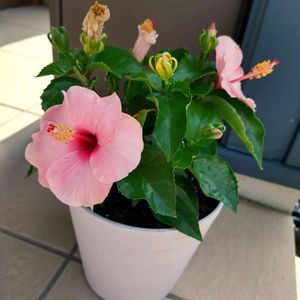 朝ベランダに出ると今年初めてのハイビスカスが 咲いていました🌺😆😆 朝日に照らされてとても綺麗でした✨ すでに沢山の蕾が付いています❣️ 毎年大輪のお花を咲かせてくれるので 今から楽しみです🥰