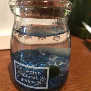 マリモ始めました。笑♡ ウォーター ナチュラル グリーンってロゴのビンに、ひかれました(´︶`艸)❤️ モス グリーン♡ 名前はモスちゃんにしようかな(✿˘艸˘✿)🎶💓