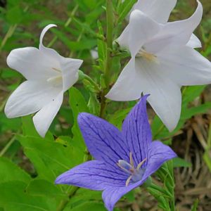 BG散歩で❗ 毎日暑く…雨振らず☀️ さっき大☔😄 桔梗 白も青も綺麗でした🎶🤍💙💕😄