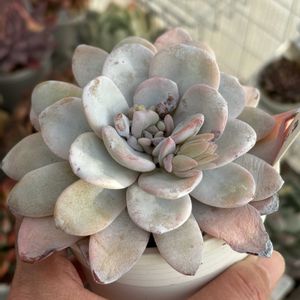 ゴーストシスター おはようございます😊 pic これもぷっくりした葉のエケベリア✨ 白い🤍爪が面白い😁 全体的に柔らかい色だけど 質感は結構しっかりしてる 少しトリマネンシス感がある感じかな? もっとウォーターマーク出るんだけど、今は見当たらないみたい👀
