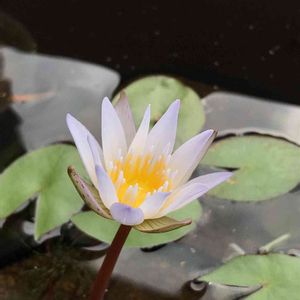数日前ですが、今シーズン初の熱帯睡蓮の花が咲きました。 天気が良くないので、花芽の成長がゆっくりです。