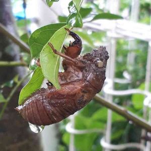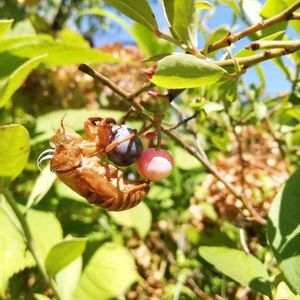 梅雨の晴れ間… 蒸し暑い💦💦 ネーブルの実が大きくなってきました🎶 アゲハチョウの幼虫も見つけました👀 なんと、蝉の脱け殻も!もうそんな時期?地面を見たら大きな穴がいくつか空いていました。ここから出てきたんだ。 明日からは雨予報☔ 蝉は雨でも鳴くのかな?