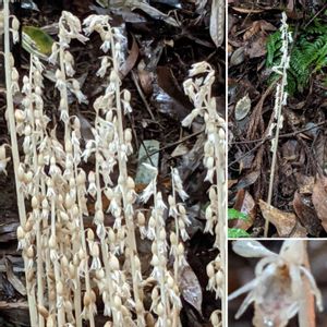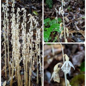 タシロラン(田代蘭) ラン科トラキチラン属 名前の由来は発見者の田代善太郎氏の名前から。 常緑樹林内に生える葉緑素を持たない腐生植物 これは凄い😳 目に入った瞬間、凄い❣️の一言 丈は50cmくらいあったかなぁ🤔 大きくて何本もありました! 見た目はホワイトアスパラガス🤤 この日は詳しい男性の方お2人とお話しさせていただきました。 このお山に出たのは今回初めてだそうです。 多年草だけど来年ここに出るかどうかはわからないそうです。 もうお一人の方、トラキチランと仰ってましたがトラキチラン属のタシロラン‼︎よくご存知です。 数えた人が居て28本出てるって言ってたけど、生え始めた時の数かなぁ?写真で数えるともっとですよ〜 再確認 40本以上ありました☝️ GSでは何度も見てるので名前はすぐにわかりました💡 ただ、どこをどう写すと良いのか分からず😅 赤い斑があるのが舌弁のようです。