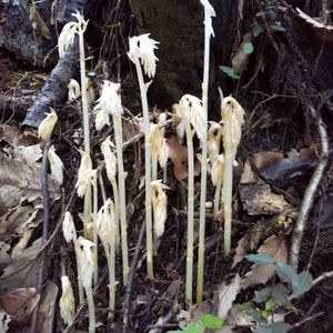 低山で見つけました。 何じゃ此れは❗️😮 まさしく ユウレイタケ とも 呼ばれている 「ギンリョウソウ」(銀竜草)ですね🎵😆← 違う様です😓🙏 「タシロラン」と 教えて頂きました❗️🤗