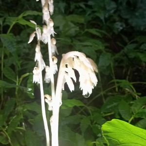 タシロラン☆田代蘭 枯れ葉🍂などを分解する菌類と 共生する腐生植物で 光合成をしないので 白いのだそうです。 細い茎の長さは20㌢程 妖精の止まり木みたい😍