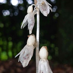 田代蘭 タシロラン ラン科 トラキチラン属 葉緑素を持たない腐生植物 3~4日しか花が開かず果実ができると褐色に…そして2週間程で消えていくそうです とても不思議な植物