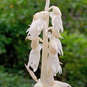 雨の中‘’花友さんのご案内~🚗♫‘’ 今回も驚きの出会いと、感動が沢山ありました🤍😯 先ずは~ビックリの出会いから(*^^*) 山道を運転しながら「なんだこれっ!!」と花友さん( ゚д゚)ハッ! 見つけたのは~‘’タシロラン‘’ 薄暗い林の道沿いに~白く浮き上がって林立していました❣ 簾のように~🤍🤍🤍 よく見ると👀あちこちに~花茎をすうっとのばして咲いています(*^^*) もう少し早くに見つけていたら…そして雨に濡れてなかったら(^^ゞ💦 毎年~花が出るとは限らないとか?? タシロラン(ラン科) トラキチラン属 葉緑素を持たない腐生ランで、腐敗した枯れ葉などに育つ菌類から栄養を取る植物の仲間♡ 準絶滅危惧種に分類されています!! 千葉県の植物ハンドブックには、稀と記載されていました♡ 来年の出会いも~楽しみです(^^)🎶