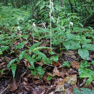 準絶滅危惧種のタシロランです。 雑木林の草むらにひっそりと咲いていました。 葉緑体を持たない腐性植物で、全身真っ白です。 不思議なランですね〜。