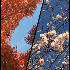 ミニドライブ日和です꒰ *´З` ꒱♪ 立ち寄った公園を散歩中、紅葉のとなりに十月桜が咲いているのを見つけました✨