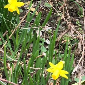ユキヤナギを見に行ったら、いつの間にかミニスイセンも二輪咲いていました。 🏷私の庭の花達