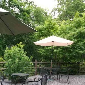 綺麗なアジサイも見れて 美味しい🍑も買って 久しぶりの温泉の後には この庭でひと休み😚 聞き慣れないセミの鳴き声もする山の中です