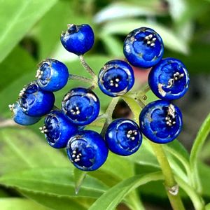 実りの秋シリーズ⑥ 常山アジサイ 碧の瞳♡ 青い実が 4年目で 初めて 実りました💙 昨年は 葉っぱばかりで 1輪も咲いてくれなかった 碧の瞳ちゃんが その反動か?😆 今年は たくさん咲きました𖤣𖥧𖡼.𖤣𖥧 風船のような 可愛い蕾ちゃんから 開花すると星型のお花🌠 秋には 瑠璃色の実がなり 3度も楽しめるって素敵ッ🎶