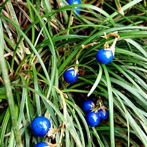 こんばんは😊 龍のひげの青い実🔵 GSで見て綺麗だなと思ってましたが我が家のも実がついてました😊 初めて見ましたよ🔵実がなるのも知らなかった😅 綺麗な青い玉です🔵