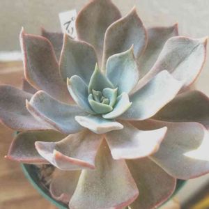 【 プリンセスブルー 】エケベリア うちに来た時から細長い葉っぱがびろーんと伸びてたから、多少は徒長してるだろうなとは思ってたけど、まぁ基本的にはそういう形なんだと思ってた。 でも、ネットで調べれば調べるほど、うちのコはホントにプリンセスブルーなのか? と疑いたくなるほど形が違う。 最近になってようやくそれっぽい雰囲気が出てきたような気がする。 真ん中だけね。 ***** ピンクに染まったバスタオル、ダンナに見せたら ( ゚∀゚)・∵ブハッ!! ってリアルに吹き出してむせた。