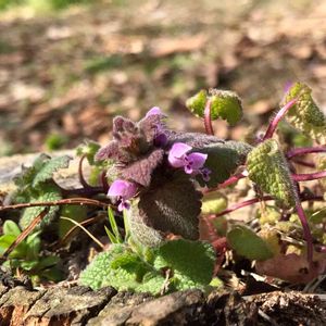 切株の窪みに咲いていたお花🥰 ヒメオドリコソウと教えていただきました ありがとうございました😄❣️
