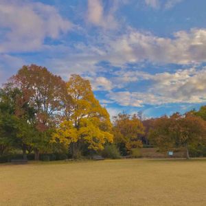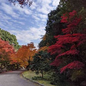 🍁万博記念公園の紅葉🍁 赤とオレンジと緑と空の青と