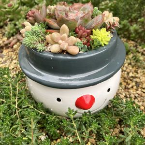 今日、ダイソーの クリスマス売り場に スノーマン植木鉢が売ってたので 衝動買いしてしまいました。 初寄せ植えです。楽しかった♪ 嫌なこと続いてだけど、気分転換になりました。
