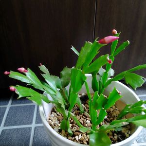 おはようございます☔ 今日のお花 シャコバサボテン♫ 2年前摘み取った葉を頂き挿したものやっと少し蕾がつきました。開花迄は後少しかかりますね🩷