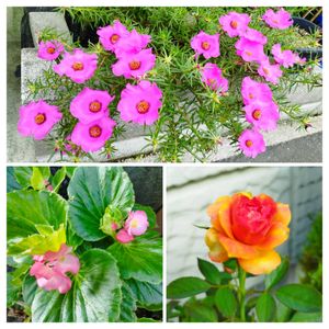 おはようございます☀☁ はっきりしないお天気です。今日のお花 マツバボタン ベゴニア バラ🌹が又咲き始めました♫