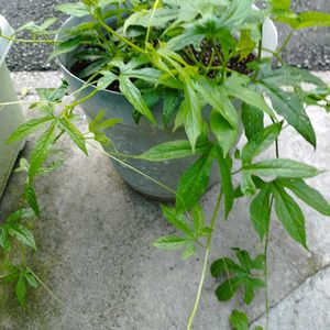 こんにちは〜☁☔ 先程ザーと☔がふり少し凉しくなりました♫ オキナワスズメウリ おそくに植えたスズメウリやっと子蔓が伸びてきました実が少しでも生ってほしいな💚♥️ スモモジャム 頂いたスモモで美味しいジャムが😋 ピーマン 1本だけのピーマン🫑元気イッパイ 沢山収穫 🫑🫑