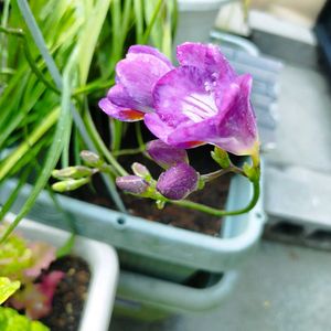 おはようございます☔ ☔になりちょっと冷たい朝になりました。 フリージア💜のお花が咲きました🎵