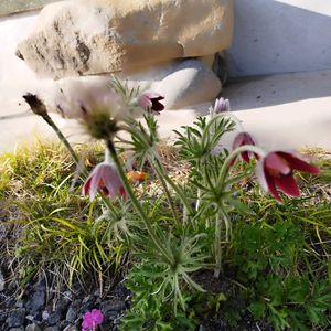 こんにちは☀ 久しぶりに姉のお庭に咲く オキナグサ🎶 うつむき加減に咲く赤い ビロードのような花びら🎵 綿毛も可愛い💞 小さい頃よく見かけていた 懐かしいお花ですね😊