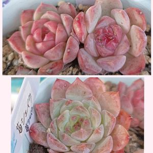 多肉植物園ナイト営業ラスト✩.*˚ 夏色になって来ました。 予想通り『シュエシャン(雪山)』『杏子もち』の現状により近づきました。 やっぱり同品種かな^^;