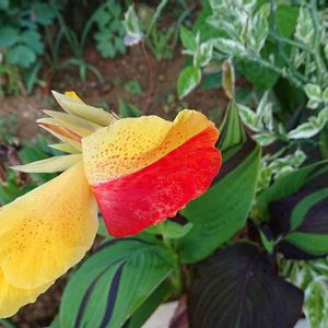 ツートンカラーの葉も素敵なカンナ・クレオパトラ✨ お花も綺麗にツートンカラーになってました😊