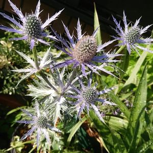 《エリンジューム ビッグブルー》 最初は緑色の蕾で段々と銀色になり、そして最後は爽やかな青色になりました👍 シャープな見た目ですが棘の鋭さはアガベ並みで要注意です💦