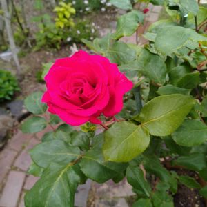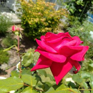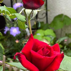 四季咲き大輪バラ🌹クリスチャン ディオール 玄関前に挿し木を地植えした真っ赤なバラです 鉢植えのドリームローズ御殿場と仲良くコラボ