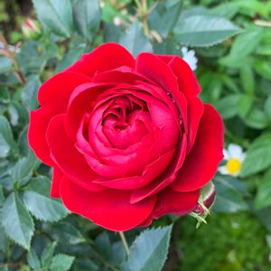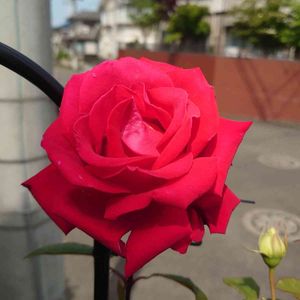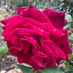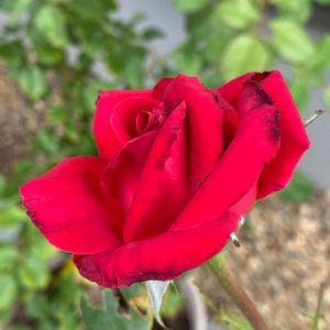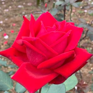 クリスチャン・ディオール 5年目地植え 四季咲き🌹大輪 最高に可愛い 葉が落ちやすく病気になりやすい😢 でも真っ赤なバラの色が素敵