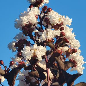 おはよう𖠇ຼ.⸜(* ॑ ॑* )⸝𖠇ຼ.ございます♡⃛ 🌸 ブラックパール 🌸 ほかの サルスベリより だいぶ遅れての ゆっくり 咲き出した子( ´•ᴗ•ก) 銅葉で 🌿も 綺麗です ✨ いい日で ありますように 🕊 𓂃𓈒 𓂂𓏸 ・