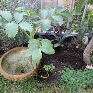 植物園で 一目惚れして ずっと欲しかった けど 情報が少なくて 植える 自信がなかった メリアンサス マヨール やっと家に やってきました😄 最大3m になるということなので 場所を空けるために 朝から めっゃ 土を掘りました あーしんど😣