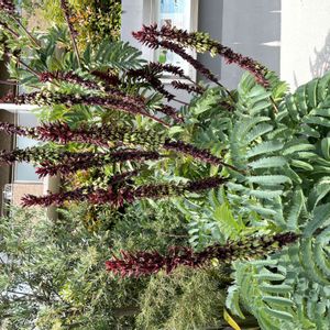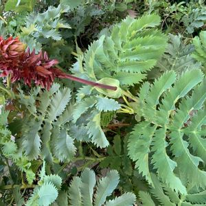 メリアンサスマヨール♡ 仕事先の駅の花壇にて。 ここは駅前開発で、リニューアル❗️ オージープランツに混じって 南アフリカ産のこの珍しい植物も 植えられています。 個性的なお花が咲くようです。