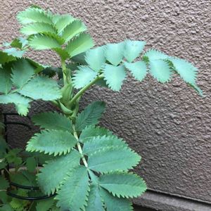 ■メリアンサス マヨール 蕾が5つ。楽しみです☺️ 最高気温19℃、最低気温5℃ (以下、園芸ネットHPより) メリアンサスはシルバーブルーがかった鳥の羽根のような大きな葉が印象的なアフリカの常緑小低木です。成長するにつれ、根元から子株が出てブッシュ状の樹形となります。比較的耐寒性はあり関東以南の温暖な地域なら戸外で冬越しできます。暖かい地域では常緑性ですが、中部地方以北では冬は落葉します。成長が非常に早く1年で2mほども成長し、ブッドレアのような大きな赤い花を咲かせます。茎葉は有毒なので、間違って食用にしないようご注意ください。 Melianthus major タイプ:南アフリカ原産の半耐寒性常緑低木 樹高:1~2m 日照:日向向き 耐寒性:0度以上 栽培方法 日当たり、排水、風通しののよい場所で育ててください。やや寒さに弱いので、庭植えは関東地方以西で、冬に寒風のあたらない場所に植えてください。寒い地域では鉢植えにして冬は室内にとりこんでください。2月から3月と9月下旬から10月に緩効性の化成肥料を与えます。