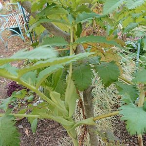 メリアンサスマヨール 初の冬越し(昨年は鉢にて室内へ移動しました) 今年は暖冬だったからか、なんだか冬でも成長し、こんなに立派になりました! ただ、0度を下回った時は、下の写真のように葉が一部分縮れました。 茶色の枝のみになると思っていたので、今年は花に期待したい!