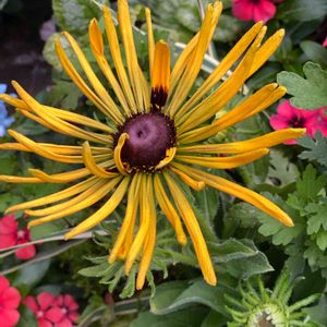 お店のルドベキアの中に1つだけ ちょっと変わった子を発見して☺️ ルドベキアの「デンバーデージー」って 描いてあったけど検索してみても こんな子じゃないよぅ🤔 気になってた「リトルヘンリー」にも 似てる♡ 線のような花弁がクリン⤴︎と チャーミングね😍