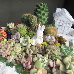 小さなお庭 タニサボちまちま 葉挿しっ子とミニサボテンで、 ウサギさんのお庭を作りました💕