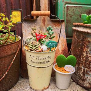 作ってから3年も経っていたリメ缶の寄せ植え。変わらず元気。左のもち吉の缶の寄せ植えはナチュラルガーデニング2018、右の廃材リメ缶はGreen snapの多肉植物&グリーンのDIYにも載せて貰ったこともあり大切な作品です。