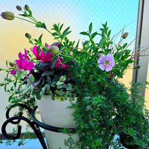 シレネ2種育てています。 これが親株。ここからひと枝カットしてはあっちに挿し木、こっちに挿し木…寄せ植えの足元を飾っています。 🌿左から シェルピンク / ナッキーホワイト