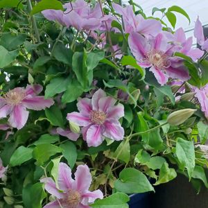 こんにちは〜☔ 今日のベランダ🎶 クレマチスドクターラッペル💕咲き出しました⸂⸂⸜(*^ᵕ^*)⸝⸃⸃ 2️⃣3️⃣去年一昨年のラッペルさんはもう盛りもり🎶 今年はどのお花も遅い感じがしますね〜(^^;? 今年はちょっと仕立て方変えて トレリス風支柱(3/21にup) にしました(*^^*)/♬~ もう枝も伸びて葉っぱ盛りもり お花が葉にかくれたり😅💦 ちょっと写真撮りづらいです〜 やっぱり2️⃣3️⃣の様なブロック塀に掛ける方が良かったかな❓と ૮꒰˶ᵔ ᗜ ᵔ;꒱ა˖💦 ベランダガーデン🌿・*:⋆゜ いつまで経っても悩んでばかり〜(≧∇≦) でもなる様になりますね〜 🏷とにかくGS楽しもう! ですね〜*ˊᵕˋ*)੭⁾⁾ꕤ☪︎⋆。˚✩.˖⋆°✧*。.。・:*:・゚*✲゚*。✧*✲゚*。♪.•*¨*•.¸¸♬☪︎⋆。˚✩.