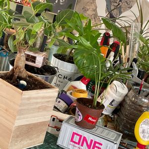 ガジュマルがホストツリーです。 何処までがホストツリーで、何処から壁か? 判らなくなっちゃった😅 近所の公園の木。脱皮してたもんで、 そーっと触って、剥がれそうなら剥がして、 その皮で。骨はケヤキ。柵も。梯子も。 ン〜なんか…牡蠣みたい🤭 大きさの比較で、ドレッシング入れといた。