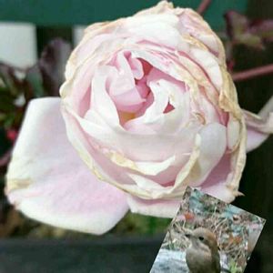 四季咲き 半直立性 波状弁のフルフル咲き 花径10~12㎝ 強香 しべを見られるのが恥ずかしいのかな? 「やだ~見ないで❗」って 花弁で隠してるみたい。