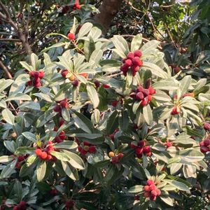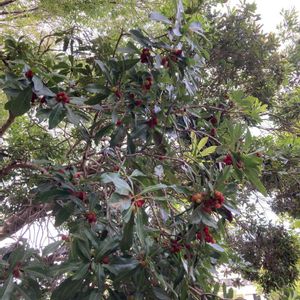 街路樹 見上げると 可愛い 実が沢山 カラフルな ビーンズの固まりの様 一口に頬張ると 色んな味がミックス 想像し難い味に 子供の頃の思い出がよぎる 今では 一粒ずつ ゆっくり 味わいたい🎶 もう少ししたら 甘い 実に熟し 🐦さんが 喜ぶのでしょうか 山桃の実